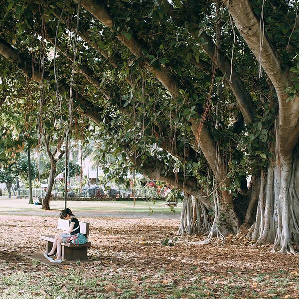 出了公园回酒店的路上遇到社区公园,有参天榕树,树上坐着好些人在写写画画