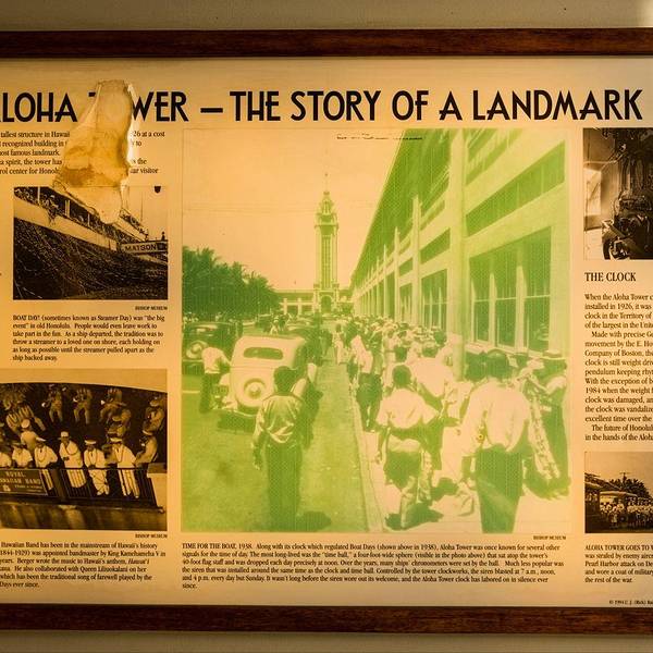 阿罗哈塔坐落在檀香山海港,是1926年之后40年间夏威夷最高的建筑。塔上的时钟是美国最大的时钟之一,如今塔依旧伫立在海边欢迎着八方游客,还能登上塔上第十层的眺望台,欣赏海景与都市融合的美丽景象。第九层还有一个展示檀香山港口历史的小型博物馆。而塔下面的阿罗哈塔市场则云集了各种购物商店和特色的美食。