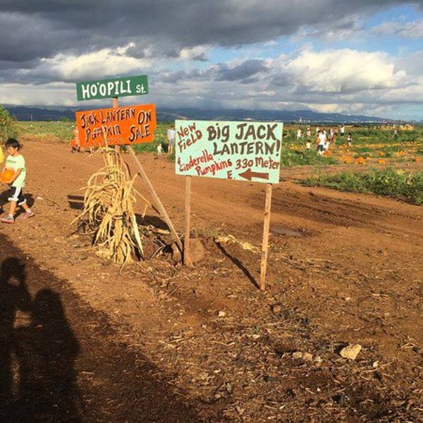 10月31号是西方的万圣节,就是我们说的鬼节 我们中国的鬼节都会选择留在家中, 而西方的鬼节就会很热闹,很多人都会在家门外放满棺木、蜘蛛丝、骷髅头等等。 而夏威夷每年的十月份都会办一个万圣节南瓜园,吸引很多人来玩。 南瓜园有两个,一个在东岸Waimanalo, 另一个就是我昨天去的,位于西岸的Aloun Farm, 但对不起,今天是最后一天,还赶的及的朋友还可以去一去, 不能够的话就下一年咯~ 入场费每人3块,免费停车。 早上8点半开始,到5点关门。 如果早上去就要戴帽子、墨镜、还有防晒, 像我很晚才去的,就不用咯, 有一片鸟云一直跟着我,虽然拍出来不太好看, 但是却省了我不少防晒霜 还可以去农场摘玉米、自己选自已摘!哈哈我就不太会选所以就算了!