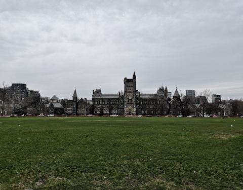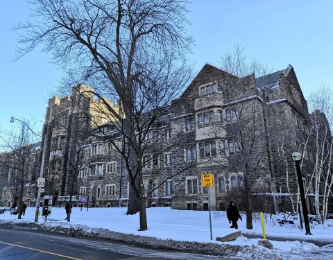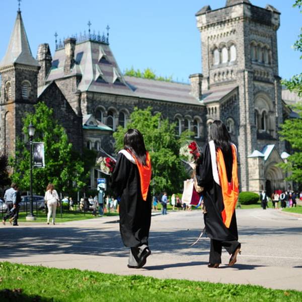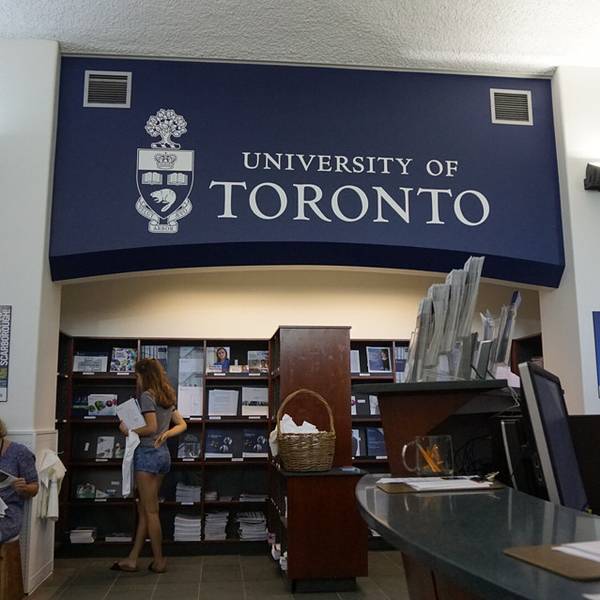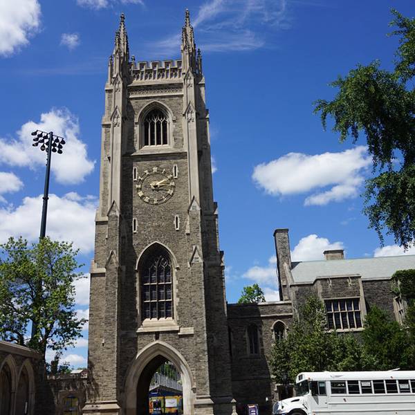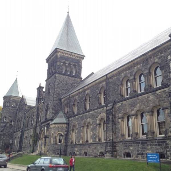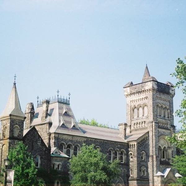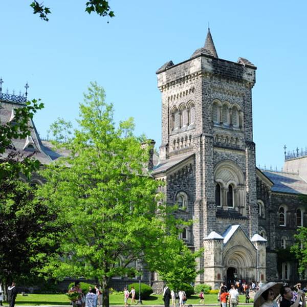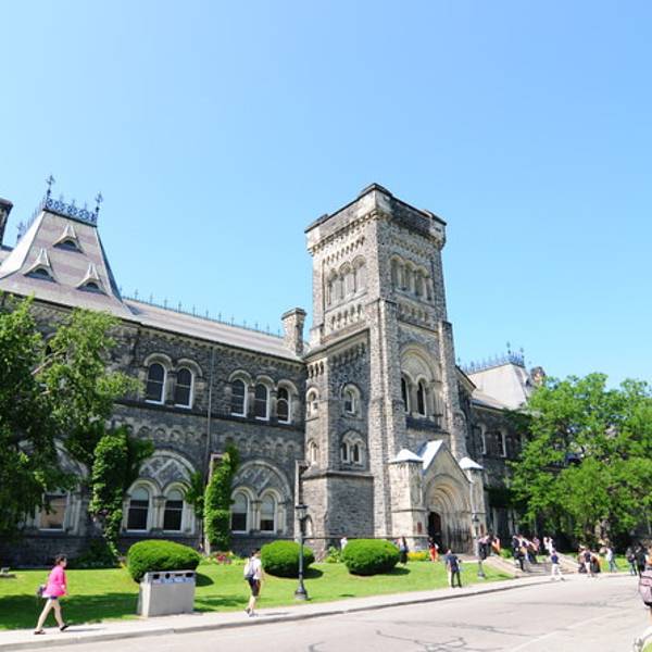 多伦多大学创建于1827年,是加拿大非常有名的公立大学,位居世界排名的前20位,有着悠久的历史和杰出的研究实力,世界知名科学家钱伟长都毕业于此。 多伦多大学的圣乔治校区是校本部,校园并没有围墙,处处都是古老的维多利亚建筑和现代风格的大楼,集古老与现代为一体,富有特色的建筑、绿树林荫的校园、随处可见的雕塑以及草坪上讨论问题的学生们,四处都弥漫着浓厚的文化气息。 多伦多大学门前的草坪右边是多伦多大学哈特之家,进入校门,穿过一片绿地就能看到大学标志性建筑、拥有上百年历史的大学学院(University College)的主楼。南方是毕业典礼大厅(Simcoe Hall),每年6月这里会有盛大的毕业典礼,如果时间合适不妨前来观看一场意义非凡的典礼。位于校园西北方向的John P. Robarts Research Library是一栋雄伟的三棱形现代建筑,是加拿大规模较大的图书馆,馆藏图书多达10万,规模仅在哈佛大学和耶鲁大学之后。
