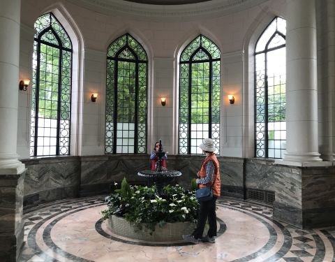 它距离市区还是有一段距离的,坐地铁公交很方便。票价还是有点小贵的,进入后可以向工作人员要讲解的机器。古堡里面装饰华丽,除了表面看到的房间家居之外,还有暗藏着拐角的窄道楼梯,可以通往楼上和楼下酒窖。古堡里除了展出了几乎原貌的家庭气息,还介绍了古堡的发展历史和建筑设计,值得前去学习一番。