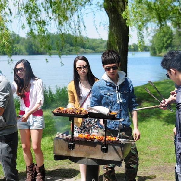 虽说去过三次以后,对于多伦多也算是很熟悉,但是温暖的夏天毕竟可以进行很多冬天想都不敢想的活动。女神小姐叫上她的一帮兄弟姐妹,周末买好烧烤用的食物、焦炭,周日一早直奔Centre Island开一个加州式的烧烤趴。Centre Island的BBQ Grills是先到先得,所以我们搭了早晨9点的船从Downtown出发去抢占Grill。这样一个阳光明媚的夏日周末,湖心岛上全是蛰伏了半年终于等来阳光的加拿大人,热闹非凡。亲手升起的炭火,烤上姐妹们亲自下厨腌制的烤肉,观赏湖景,异常惬意。这也算是多伦多在寒冷了半年给人的福利吧。