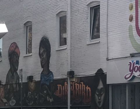 这一片社区的街道上,随处可见墙上的涂鸦,或热烈、或潦草,或生活味、或艺术心。一元店、二手货毫不掩饰。人们悠然享受岁月静好。
