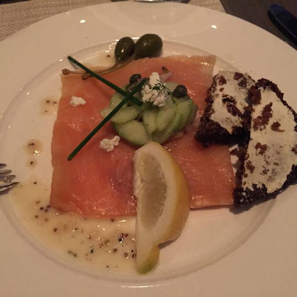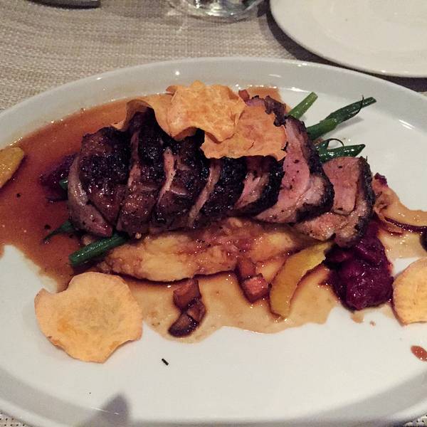 【名称】:360°CN塔全景餐厅 【地址】:多伦多市中心 301 Front St W Toronto, ON M5V 2T6 Canada 【电话】:(416) 868-6937 【环境】:360°全景餐厅是位于多伦多最高建筑CN塔顶端的一家旋转餐厅。CN塔是多伦多的标志性建筑,高351米,所以360餐厅可谓是名副其实的“高端”餐厅。 【食物点评】:1)前菜,枫木熏烤大西洋三文鱼 –味道不错,三文鱼比较新鲜。2)熏鳟鱼和土豆浓汤—中规中矩。2)苹果汁炖兔肉,蘸加拿大KOZLIK芥末酱—兔肉比较老,不推荐 3)Roast Wetzel农场鸭胸肉配Beamsville产的酸樱桃—这个非常赞,鸭胸肉做得恰到好处,配上樱桃一丝丝的甜味,味道很不错。推荐。4)慢炖小牛肉(veal),味道还行。5)甜品推荐黑巧克力塔。配草莓,好看又好吃。Sorbet相比之下就逊色地多。 【建议】:1)360餐厅的用餐体验是非常特别的,有兴趣的可以感受一下,一定要记住提前预约,因为他家还是挺受欢迎的,翻台率比较低。这也不难想象,毕竟来这里花大价钱吃饭的都想多坐一会儿欣赏一下美景,临时排队的话经常要一个小时以上。2)用餐时间:最佳的用餐时间大约是晚上太阳下山前一个小时,(具体根据季节有所变动,可以查看天气app:the weather channel),这个时间不仅可以看到白天的全景,还能看到日暮降临后的全景,可谓一举两得。3)360餐馆的佳肴价格虽贵,但是涵盖了参观CN塔的门票费用,所以这也要好好利用一下。在等菜期间或者是用餐完后,可以登上CN塔顶欣赏夜景,并且可以近距离感受到CN塔有规律的灯光变化,还是挺有意思的。4)餐厅外玻璃上有一些有趣的小图案,例如小金鱼,挺童趣的。
