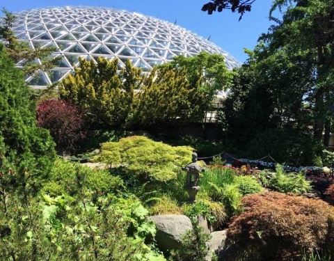 伊丽莎白女王公园占地52公顷,是加拿大植物展示园,也是温哥华较大的城市公园。四季常青的绿植和花海使这里成为温哥华较受欢迎的结婚照户外拍摄场所。闻名的四季餐厅建于园内突出的峭壁上,拥有较好夜景视野,推荐夜晚时分前来享用晚餐。 1. Bloedel温室 位于公园的峰顶,室外建有一个平坦宽阔的广场和喷泉。温室内有数百种热带植物,锦鲤和飞翔的热带鸟类穿梭,将大自然的奇珍异宝展现在你眼前。 2. 观景平台 广场上有一座观景平台,海拔150余米,是温哥华市区的较高点,可以360度眺望市区全景,向北望去还可以看到英吉利海湾和北部的皑皑雪山。每到天气晴好的日子,街头艺人多会汇集于此,可以邀请他们画一幅画像或是尽情陶醉在现场的音乐表演。 3. 日本庭院 温室西面有一座日式木质拱桥,横越于公园的瀑布上方,可俯瞰整个公园。过桥后可以看到日式石灯和日本松树,浓浓的东瀛风情仿佛带你穿越到了日本庭院。四月更是可以欣赏到各式日本樱花,东京樱、冠型樱、垂花樱争相怒放,形成一片灿烂花海。