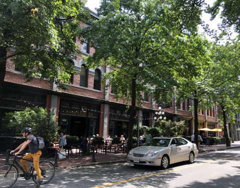公交003、004、007、008、209、210、211等到EB w Cordova St FS Abbott St站下车即到。