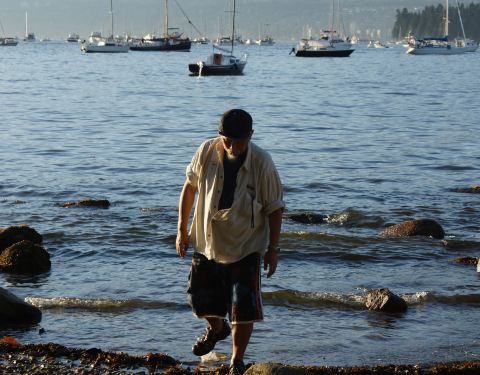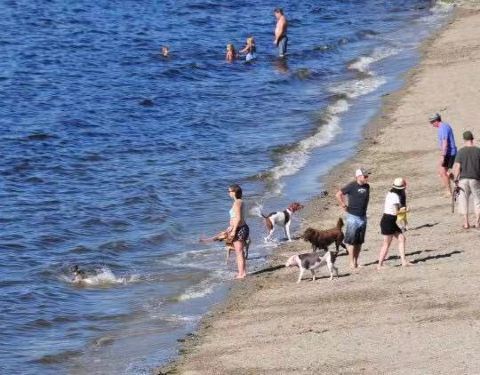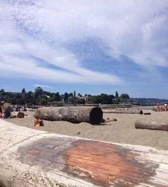 穿过住宅区,一片海滩,虽然沙子不够白,但是比基尼女郎和黝黑的肌肉男正打沙滩排球,此时谁还在乎沙子的颜色?步道上推婴儿车的夫妻,自行车骑手,柱着拐杖的漫步老人,还有坐着轮椅自驾的残疾人。传说中生活舒适的加拿大人,就是这样自由地享受阳光、空气和海滩,每个人脸上都是友善的笑容。海滩边的大草坪,家庭聚会居多,还有年轻人的BBQ烧烤聚会