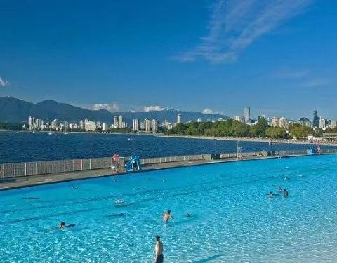 温哥华最欢乐的夏日海滩,最大的室外咸水泳池、排球场、游乐场一应俱全。