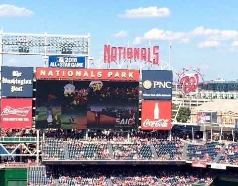 在七月四日的假期,我和我的一些朋友一起在华盛顿。好的:如你所期望的是一个全新的球场那样,这是一个超棒的球场配有所有超赞的设施。球场位于华盛顿的南部,那片儿正在被改建成新的住宅区,商业大厦以及一些饭店和零售场所已经拔地而起。我已经来过华盛顿好多次了,但是这是我第一次来到球场观看比赛。坏的:对于一个新球场而言,我很失望在我排队买食物的时候,我竟然看不到比赛。球场里面有很少位置很好的大屏幕,所以当你听到身后的比赛声时,你却从买东西的地方什么也看不到。而且那也不在球场的控制范围内..但是华盛顿不是一个理想的地方对于那些不能够适应湿热天气的人来说!(像我)