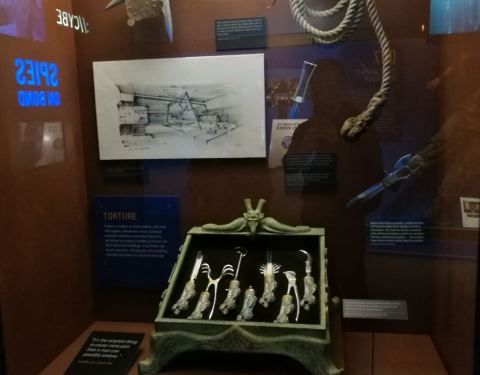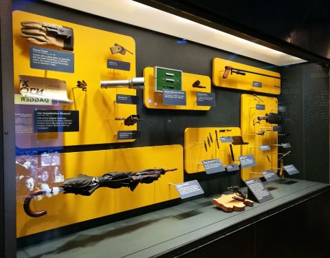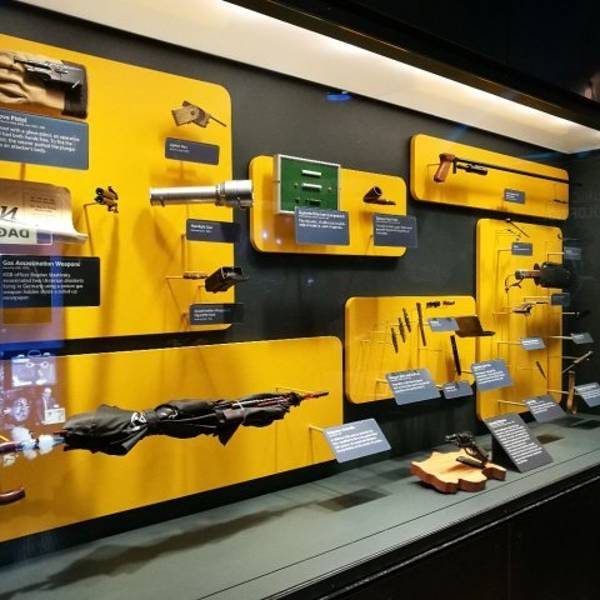 里面各种各样的间谍便携式武器,还有很多间谍的故事,特别好玩儿很特殊的博物馆,会让你选择一个角色,记住他的特点然后进行伪装,很有意思!带爸妈去的,翻译的好累。里面各种各样的间谍便携式武器,还有很多间谍的故事,特别好玩儿。