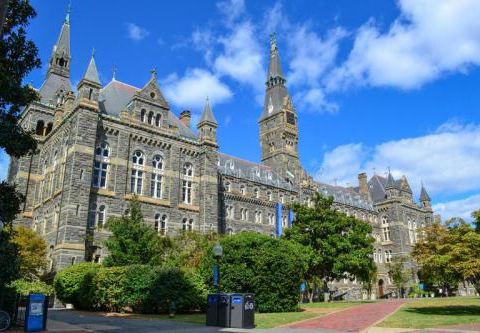 乔治敦大学创建于1789年,是美国古老的耶稣会天主教大学,也是华盛顿特区声誉非常高的综合性私立大学。坐落在风景如画的乔治城,并沿波多马克河畔而建,以古罗马式建筑风格的美国国家历史名胜希利堂Healy Hall为著称。政客乐园乔治城大学在白宫西北面两英里左右,与联邦政府的办公厅仅咫尺之隔,许多外国使节的子女都在这念书,更赋予这里浓厚的国际色彩,也因此而获得了“政客乐园”的称誉。从乔治城大学走出了美国克林顿、菲律宾总统阿罗约在内的无数政界英才。