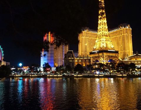 拉斯维加斯。巴黎酒店的埃菲尔铁塔和百乐宫的喷泉,海市蜃楼酒店的火山喷发,都属于拉斯维加斯的打卡地,也是地标。尤其到晚上,铁塔的灯光非常漂亮。