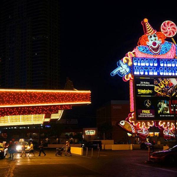 乘坐DEUCE公交车到达 Circus Circus 后步行到达。