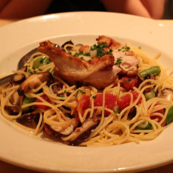 晚饭选择了之前过门而没入的Cheesecake Factory,这顿饭应该是这次旅行中吃的最开心的一顿了,并不是说味道最好,而是遇到了一个非常kind的服务员。说实话到这时候我对点菜还是不太熟悉,虽然知道每道菜都是由什么材料组成的,但就是没法联想出做出来是什么样。这个服务员过来就跟我们说有什么问题都跟我说吧,我就把我对饭菜的要求都告诉他了,直接听他的安排,果然端上来的菜非常完美,菜量和很合适,我们俩一人一份意面就很饱了,一顿饭加小费不到50刀。