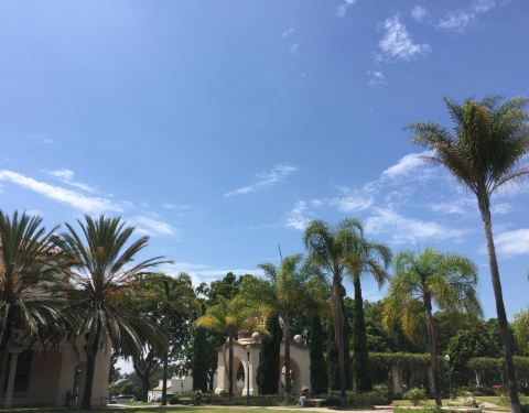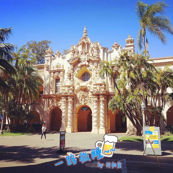 吃完饭五点多快六点了,我们下一站便去了Balboa Park。里面有动物园啊航天博物馆什么的,动物园的评价挺高的,不过我们两个人都没有什么兴趣,就没有去。但当时看这个公园的照片很美,就想去看看建筑。