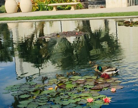 这里是整个巴尔波亚公园里最热闹的地方了,池塘位于植物园前,虽然不大,不过景色很不错,池塘里有锦鲤,水面飘着莲花,特别是鸭妈妈带着小鸭子们在池塘边觅食的画面很温馨