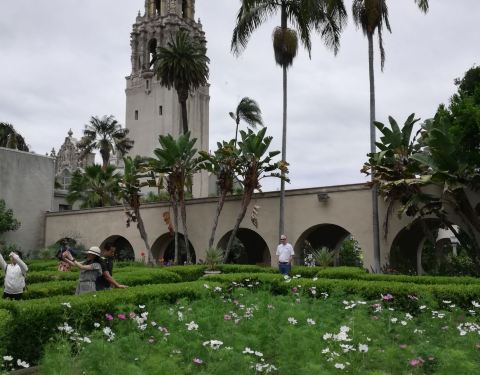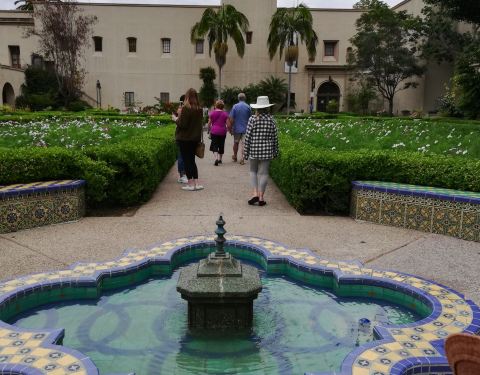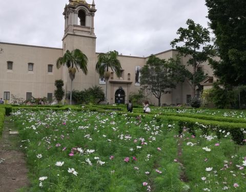 The Alcazar Garden with snapdragons, manicured shrubs and fountains is nestled between beautiful buildings in Balboa Park. It is a nice area to sit and reflect or rest while visiting the park.