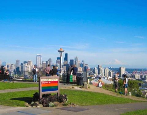观赏西雅图天际线的最佳视角,感叹太空针塔与皑皑雪山的遥相呼应。