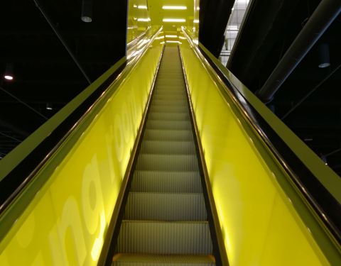 西雅图中央图书馆是西雅图公共图书馆系统中较大的一个旗舰馆,世界排名第五。该馆由荷兰建筑师Rem Koolhaas(作品有央视大裤衩)设计,知名的解构主义建筑,11层玻璃和钢铁结构棱角分明,让人仿佛置身于一张偌大的蜘蛛网。 1. 半透明的玻璃结构 玻璃和钢结构的建造呈半透明状,这样的设计使街道上的行人都可以直接看到图书馆的内部,而位于图书馆内的人,又可以拥有广阔视野,在阅览区内还能够提供柔和的室外光线,防止眩光。 2. 一层国际阅览区 图书馆的一层是国际阅览区,这里有日语、西班牙语、俄语甚至越南语和其他小语种的图书,当然也不乏中文书。此外,一楼还有专门的儿童阅览区,非常的有爱。你还可以拿到参观指南路线图,跟着它参观图书馆,寻找图书馆的经典和亮点。 3. 四层Red Hall城市观景平台 Red Hall统一的红色背景让人感觉热血沸腾,配上金色耀眼的扶梯,给人一种鲜明夺目的感觉。而四层是参观阅读的较高层,这里设有观景点,可以俯瞰西雅图市的中心景观。