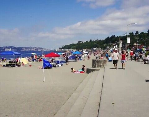 阿尔凯海滩是西雅图最出名的海滩之一的,这里面积大海水清,而且海岸线也很长的,正好是夏天,吸引非常多的人过来这里游泳玩水的,非常不错的地方