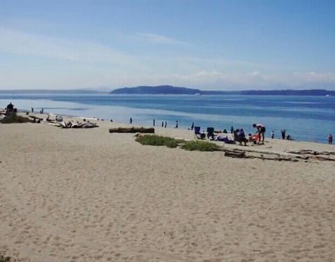 阿尔凯沙滩是西雅图著名的公共海滩的,不需要收费门票的,这里设施非常的齐全的,海滩很长,沙滩干净的,吸引很多本地和游客过来玩水冲浪的