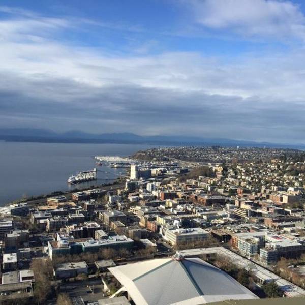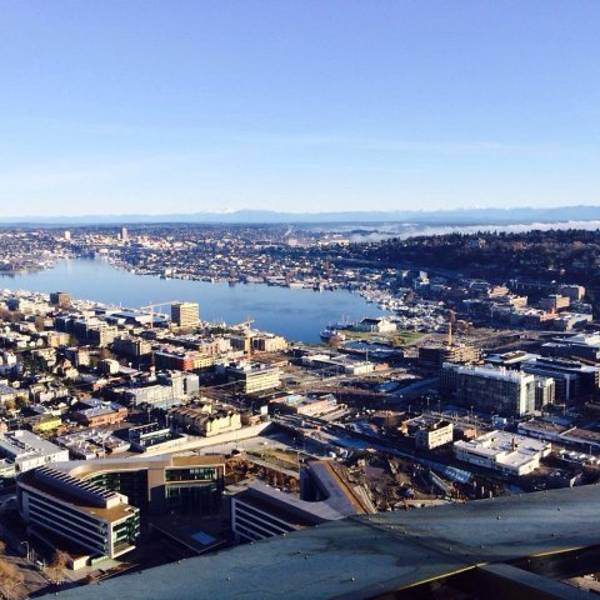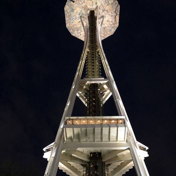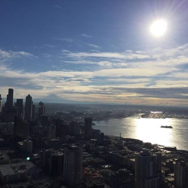 瞭望台能够360度无死角俯瞰西雅图美景space needle是西雅图标志性的建筑,为了1962年举办的世博会而建造的。塔高184米。瞭望台能够360度无死角俯瞰西雅图美景