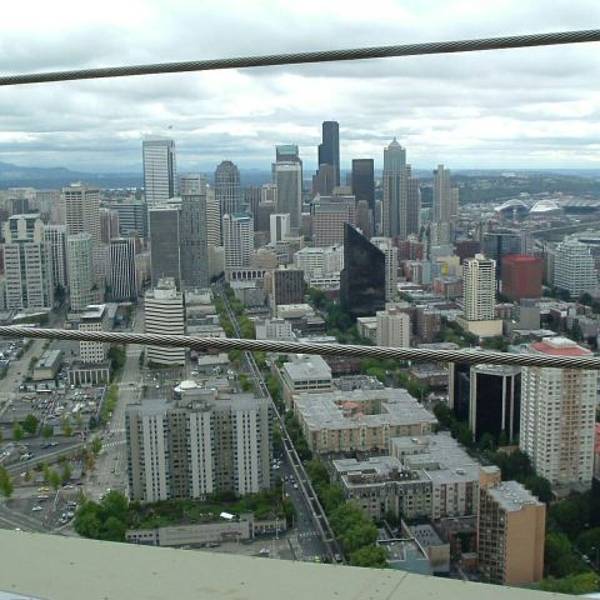 在太空针上可以俯瞰西雅图,门票每人26美金在太空针上可以俯瞰西雅图,门票每人26美金。塔顶有家旋转餐厅,需要提前预定,可以边吃饭边看景,人均30美金左右,观景就不要另外买票了,还是很划算的