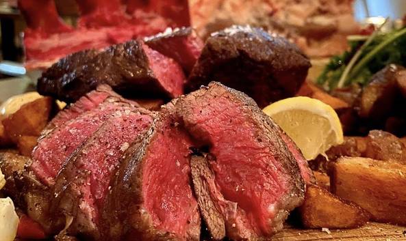 - 非常有情调啊,点了一份牛排,也是挺不错的,里面挺嫩的,还粉红色的呢