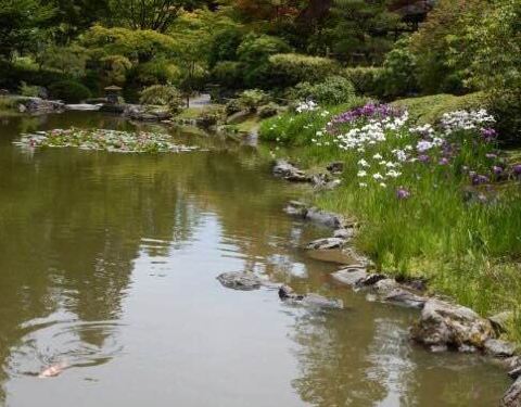 园里规模很大,四周围风景迷人,有很多以日本式建设的凉庭和住宅,树林围绕着湖泊在这里休闲漫步很写意