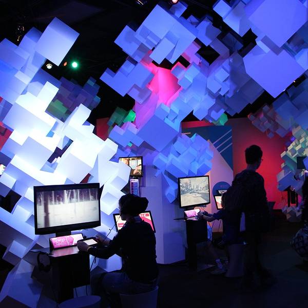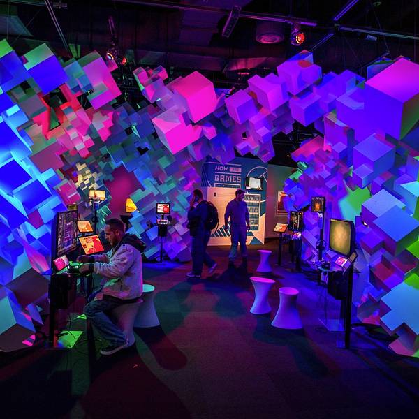正被震撼的非常失血,看到猫人儿后面的乐器瀑布龙卷风,一下就满血复活的疯狂的拍照起来。这件神奇唤做“IF VI WAS IX”(如果六是九),是由当地雕塑家Trimpin设计、使用超过500件乐器和30台电脑制作而成,所有物件如同乐之瀑布从天儿泄,又如龙卷风将琴鼓席卷而上。雕塑下的耳机一看就是用来听这个神器演奏的吧,啊居然坏了!?心碎···(三层楼高的乐器瀑布龙卷风)细看原来不仅仅是吉他还有keyboard、drum、萨克斯风、手风琴、贝斯等等~~~Kitty你又成功抢镜)(吉他瀑布6是9旁边的游戏展厅,由Microsoft技术支持,二次元世界里面全是玩游戏的小盆友)