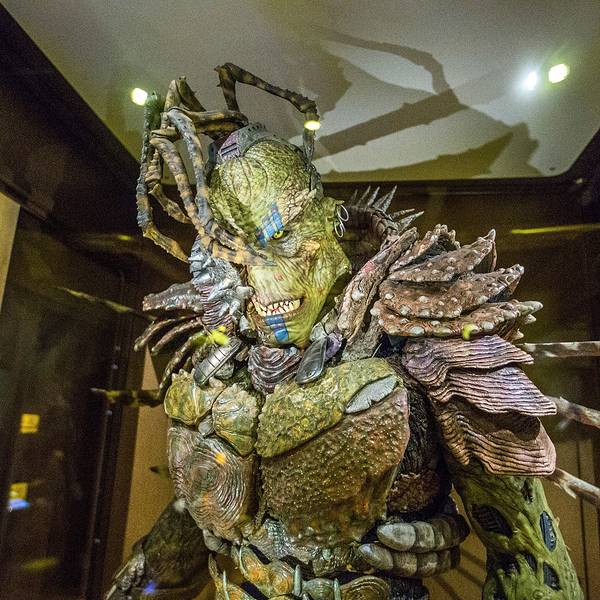 恐怖片展厅里还有一个怪物投影仪,小朋友站在前面做各种动作,摄像头和计算机通过轮廓捕捉以后生成各种衍生图像,超萌啊哈哈哈。(Hello Kitty展馆里的粉猫服)(恐怖片展馆里的一个电影介绍,大鲨鱼+大章鱼=什么鬼,导演们表示很欣赏自己的创意,呵呵···大白鲨终于可以用八条腿跑上岸吃人了喂)(Aliens的模型~~~小时候买过一个20公分高的夜光的模型玩具~~~)终结者里的机器人)