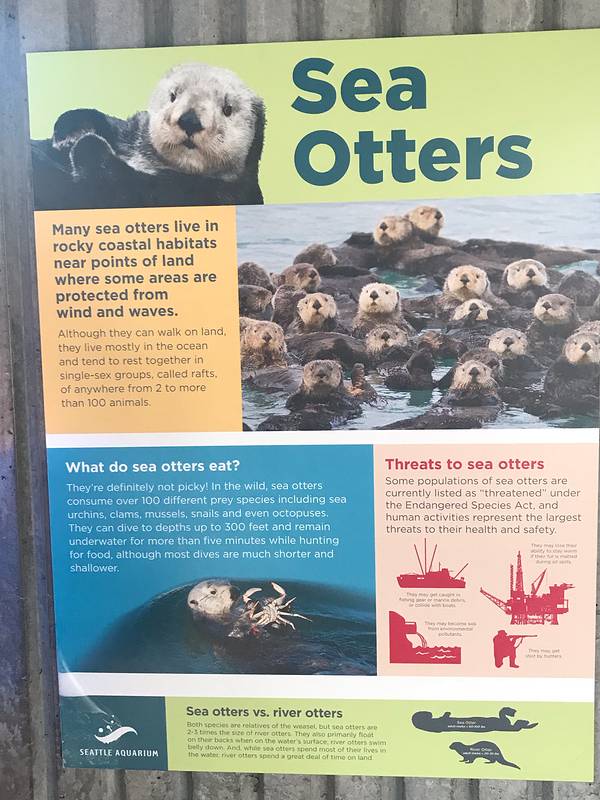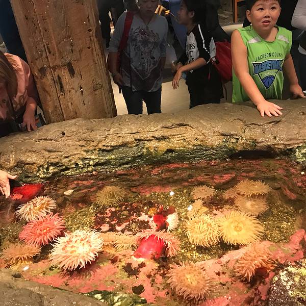 惊叹于“华盛顿水域之窗”(Window on Washington Waters) 的美丽景色...西雅图水族馆面积不大,大约两个小时可以走完,但也是不虚一行的好去处,你可以用手触摸一下多彩的海葵,可以看到不同颜色的海胆,巨型的章鱼,顽皮的海狸【西雅图水族馆】