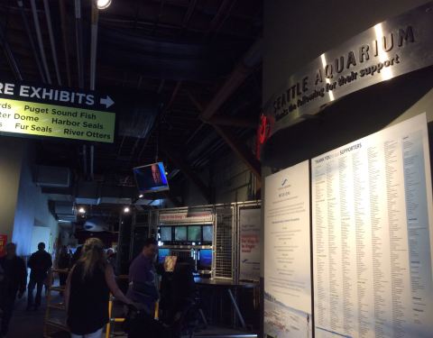 西雅图水族馆虽然规模不大,但网罗了普吉特湾内350多种海洋生物,更以喂食水獭的精彩表演而闻名,你可以在360度环绕的玻璃巨蛋中一窥海洋的奥秘,或是观察秋季洄游产卵的鲑鱼习性,相信水族馆会是亲子游玩的理想选择。 1. 华盛顿水域之窗 华盛顿水域之窗就在一进门的大厅,在120000加仑的水族箱中,工作人员展示喂食各种鱼类的方法并讲解不同鱼类的生活习性。观众还可以实时向工作人员提问,便会得到来自水族箱中的回答。 2. 水下圆顶 水下圆顶是地下一层的一个区域,在这里,你会360度被海水包围。正是由于西雅图水族馆临海而建,这个水下圆顶成为游客钟爱的看大型海洋生物的地方。