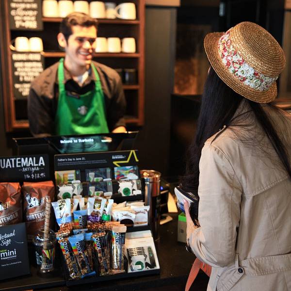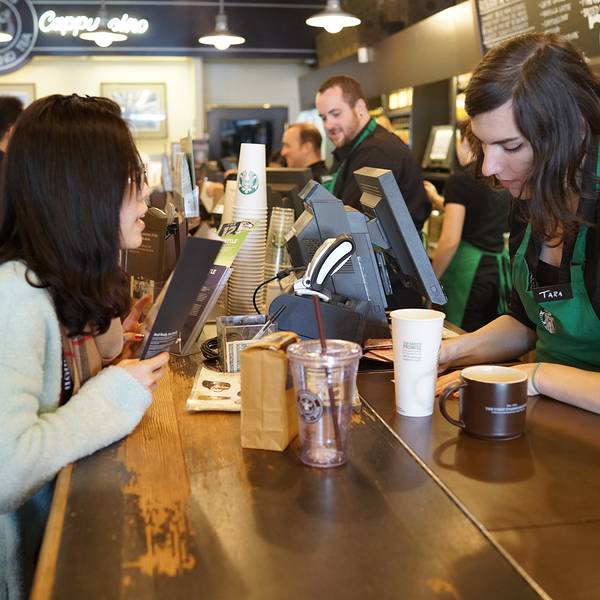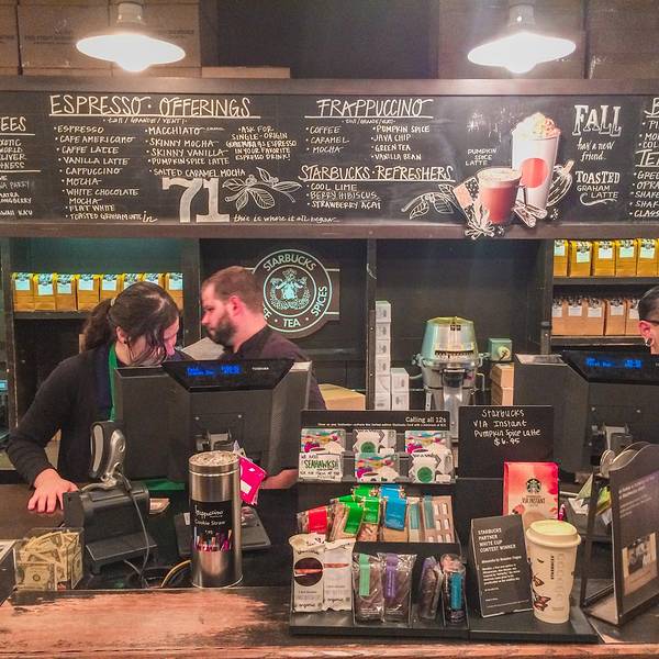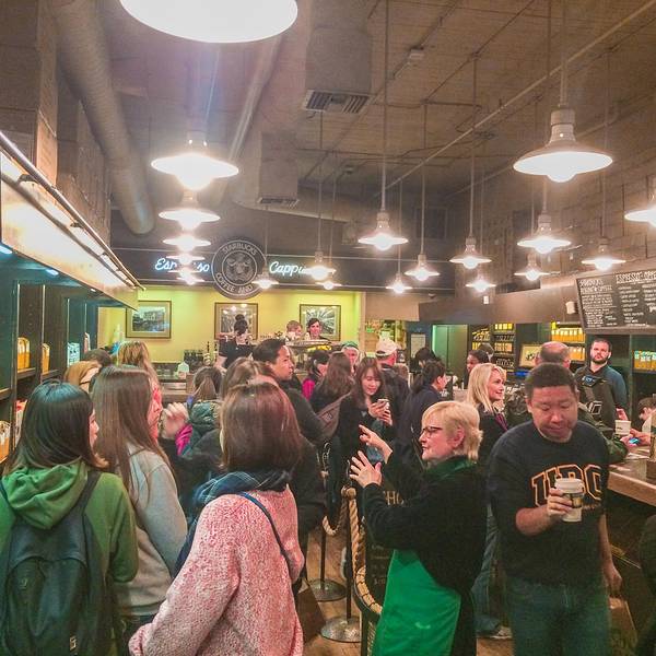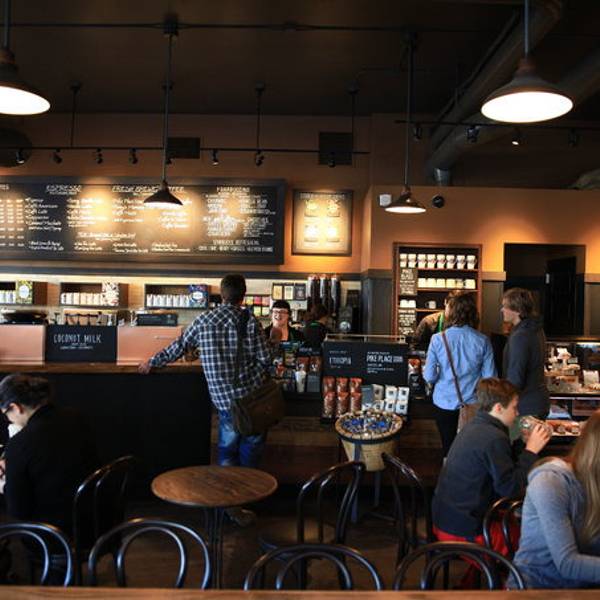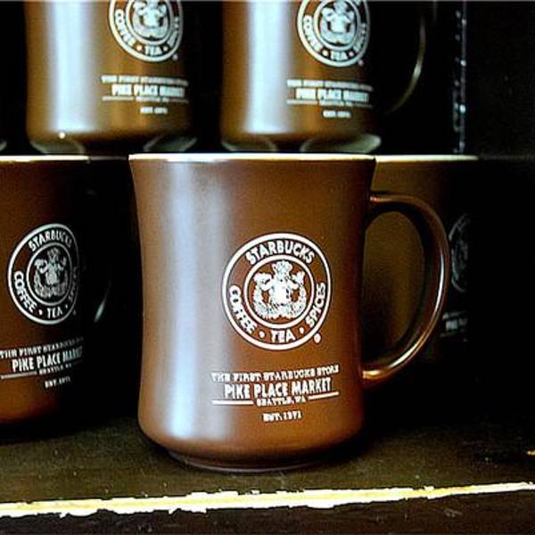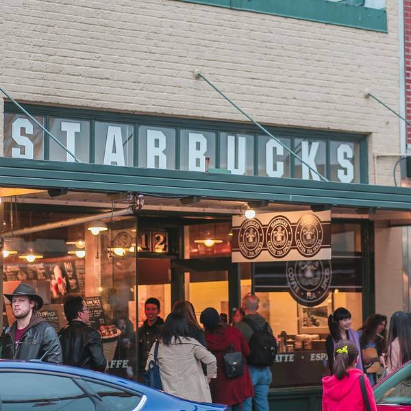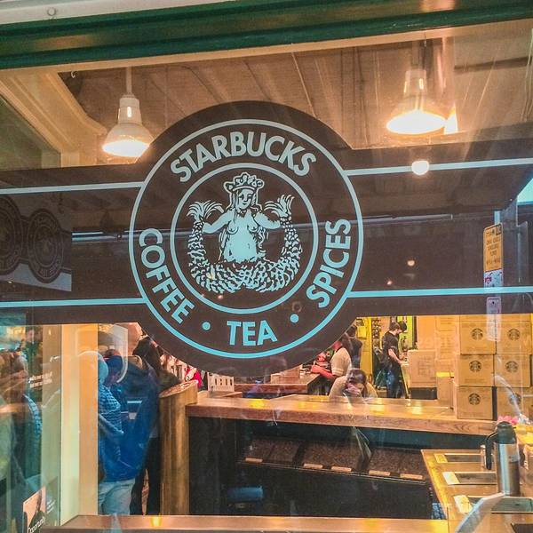 对于咖啡爱好者来说,星巴克是耳熟能详的名字。它来源于19世纪美国文坛杰出大师赫尔曼·梅尔维尔的经典著作——《白鲸——莫比·迪克》的主人公。西雅图人热衷咖啡的程度超乎想象。第一家星巴克在1971年就开在了派克市场内,以售卖烘焙好的咖啡豆和咖啡机为初衷,并就近提供现成的咖啡给刚上岸想暖身的渔夫们,其商标使用美人鱼的原因之一也是为了吸引渔夫们的注意。后由霍华·舒兹(Howard Schultz)收购,改变经营模式,向派克市场的小贩们售卖意大利式浓缩蒸馏咖啡,如今星巴克已成为世界领先的特种咖啡的零售商,旗下产品包括30多款顶级的咖啡豆、手工制作的浓缩咖啡和多款咖啡冷热饮料、新鲜美味的各式糕点食品以及丰富多样的咖啡机、咖啡杯等商品。 第一家星巴克店内不仅悬挂着最初褐色双尾鳍的LOGO,还可见一尊纪念柱鹤立于店内,这也是辨别第一家星巴克的标志。凡是携带从第一家星巴克店购买的咖啡豆,到世界任意一家星巴克店均可免费制作咖啡。