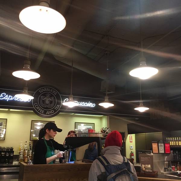 如果去了西雅图,就一定会去派克广场,如果去了派克广场,就一定会去哪里的星巴克。也不是因为这里的咖啡最好喝,而是因为这里是全世界第一家星巴克。本来也不打算去的,不想跟风,但朋友是星巴克的忠实粉丝一定...如果去了西雅图,就一定会去派克广场,如果去了派克广场,就一定会去哪里的星巴克。也不是因为这里的咖啡最好喝,而是因为这里是全世界第一家星巴克。本来也不打算去的,不想跟风,但朋友是星巴克的忠实粉丝一定要去@ @ 到了派克广场已经就看到了一支长长的队伍,所不其然就是星巴克的。一看就知道大部分是到此一游的游客,当地人会选择路边随便一家小的咖啡馆。咖啡店里面没有什么特别的装饰,如果不知道会以为是一家普通的星巴克,唯一的区别就是星巴克的logo了,这里的logo还是美人鱼双尾的那种。于是跟风在这里买了一杯咖啡,吹吹海风,感觉还是不错的。这里距离有名的口香糖墙只有250米的距离,可以步行到达(但个人觉得挺恶心的,远远的看看就好了)。我们是乘坐公交21路到second pike站下车的,距离星巴克和周围的景点都很近。