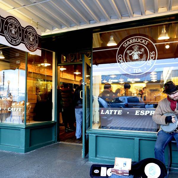全球第一家星巴克就在派克市场旁边,凡到经过的观光客,大多会进去参观一下,点上一杯咖啡一路慢慢品尝。