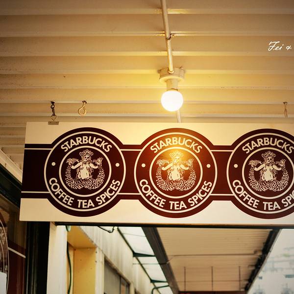 绵绵细雨早晨,到达派克市场注意看星爸爸的logo,这个是最开始的logo噢