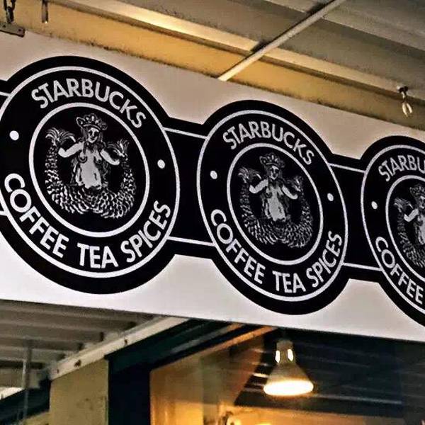 这个星球上第一家Starbucks,还保留着当时的LOGO