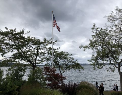 不错的风景。我们去参观华盛顿大学路过这里;参观麦迪纳小镇也走到湖边华盛顿湖是美国华盛顿州仅次于奇兰湖的第二大湖,也是金县最大的湖。我们去参观华盛顿大学路过这里;参观麦迪纳小镇也走到湖边。不错的风景。