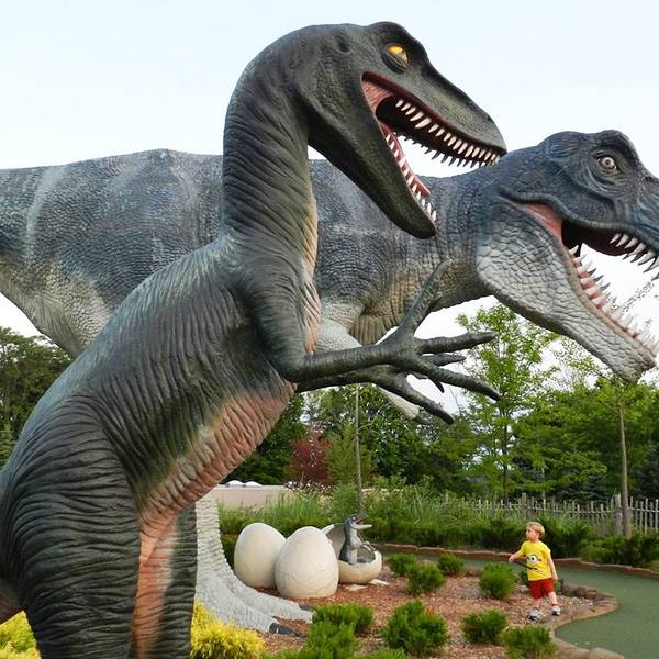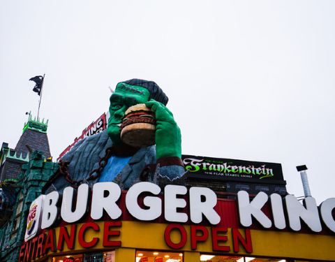 这是在旅游景点经常能看到的“人体雕塑”,混口饭吃不容易。各种不同的恐龙,不少小孩子在里面玩吃过饭继续在附近转转。旁边的汉堡王餐厅。