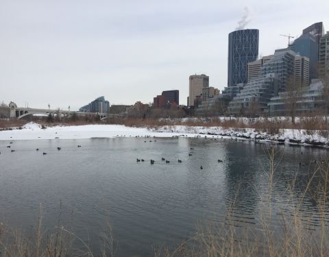 走路到公园即可,虽然已是三月中,卡尔加里任然冰天雪地,野鸭野鹅在仅有的水域悠闲的滑水,一派的安静祥和在卡尔加里的downtown,走路到公园即可,虽然已是三月中,卡尔加里任然冰天雪地,野鸭野鹅在仅有的水域悠闲的滑水,一派的安静祥和。