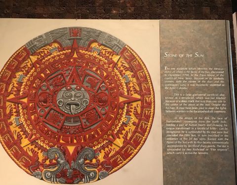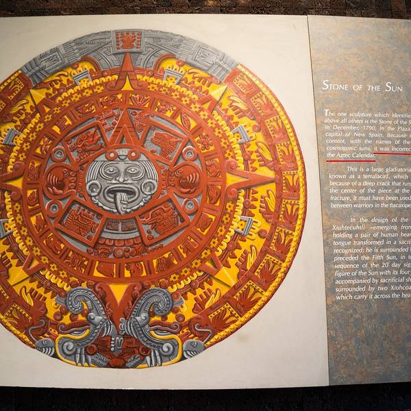 这是一座位于墨西哥城地下的一座古城,类似于罗马城下的古罗马。13世纪阿兹特克人统治了墨西哥,将首都鉴于此,在当时红极一时。但是好景不长,15世纪初,西班牙殖民者发现了美洲大陆,一路探索到了墨西哥湾,将阿兹特克人一举消灭,建了现在的墨西哥城,而废墟永留记忆中。每个博物馆都有一个自己的镇店之宝。如果你没时间,就进了大门笔直往前走,便可以看到一块巨大的石头--太阳石。墨西哥的第二国徽。查阅了许多关于太阳石的资料,所有的资料都显示这是一块日历石,我也是这样一直认为的,直到回家整理照片看到官方介绍后,有点不知道怎么解释了,看红色部分,“it was incorrectly identified as Aztec Calendar.” 这不是日历?what?另外博物馆外有一对翅膀,也不知道代表了什么。也许是代表...帅与美 展开