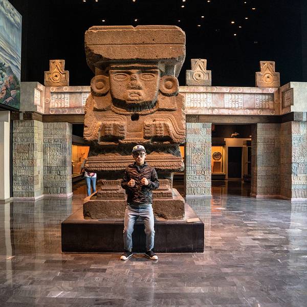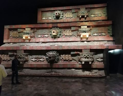 -开放时间:9am-7pm Tue-Sun因为离酒店比较近,走路到达的这个拉丁美洲最重要的博物馆,这个博物馆虽然不及大英博物馆,纽约大都会博物馆那么有名,但是馆藏早已享誉全球,整个馆几乎囊括了墨西哥的所有国宝。馆的中庭设计得非常气派,中间大型的图腾水柱象征着墨西哥人对水的渴望。整个展览馆分为两层,从右开始,按照历史发展顺序,逆时针游览。人类的起源,从一个原始人开始。说实在,我们的确不懂历史,而且看不懂西班牙文。只能各种各样的装X了。博物馆绝对是个摆拍的好地方。其实参观完第一馆之后,我们就已经不懂了,只是看到一些有趣的东西就拍拍。虽然不懂这一段历史,但是馆内的藏品确实是不错。(第一次p图p到自己有点怕怕的感觉)有些展品不得不单独提出来一下。比如这个--Tenochtitlan