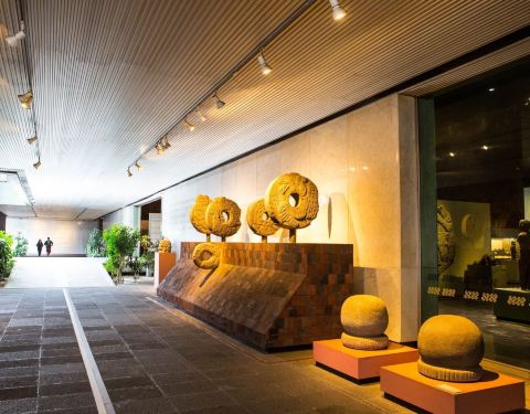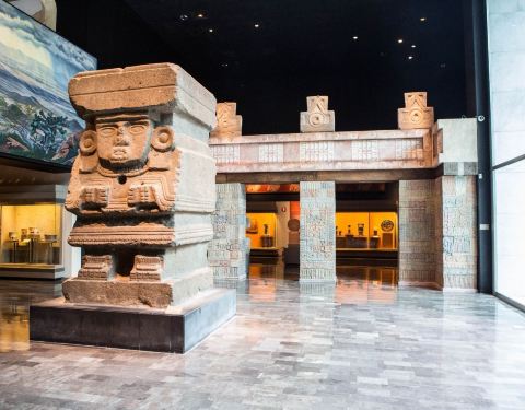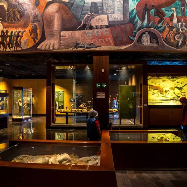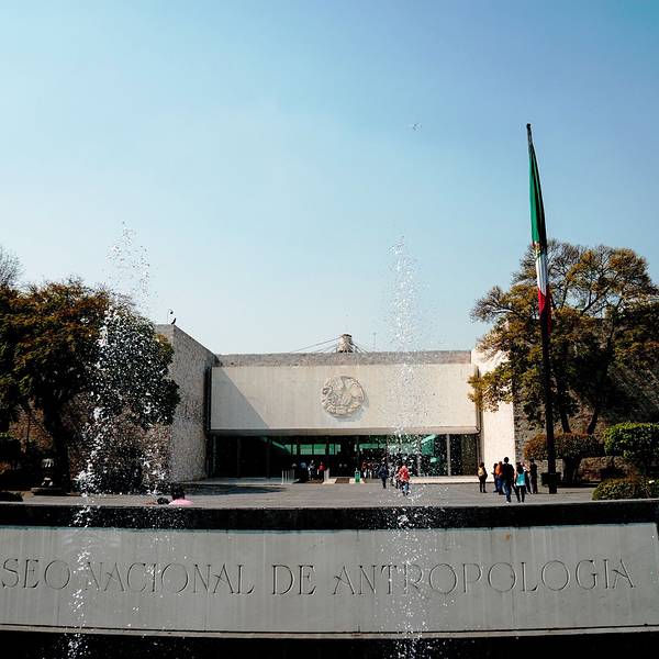 国立人类学博物馆开放于1964年9月,前身是1808年的墨西哥大学古物委员会,在人类学历史上具有很高地位。馆内展示着墨西哥的印第安文明、阿兹特克文明和玛雅文明。 博物馆分两层,底层有12个大厅(sala),集中展出考古出土的27000多件文物,主要介绍前西班牙时期的墨西哥文明,包括体现印第安文明的大量珍品,如彩绘人像锅、彩绘陶锅、美洲虎翁、玉米神像香炉、笑面人像、人面纹香炉、雨神像瓮等。Mexica展厅里重达24吨的太阳石,则成为阿兹特克昔日辉煌的留证。第二层的展厅在位置上基本与一楼对应,用于展示墨西哥当代文化和现代生活。通过服饰、乐器、武器、宗教器皿和生活用具等多种文物详细的说明了墨西哥各民族的文化、艺术、宗教和生活方式等情况。 博物馆建筑本身是墨西哥现代建筑的典范,中央大厅巨大的伞状石柱喷泉堪称点睛之笔,它也曾出现在很多墨西哥城的明信片上。此外,博物馆内还有关于人类学概述、史前时代和美洲大陆原始移民等内容的相关介绍。