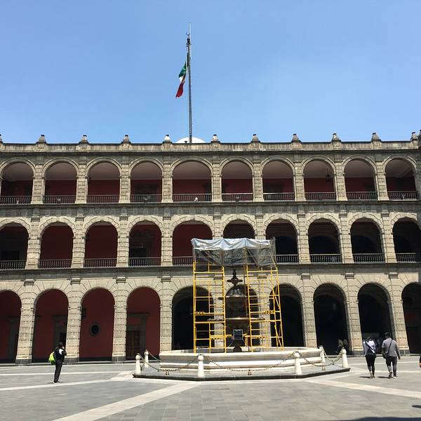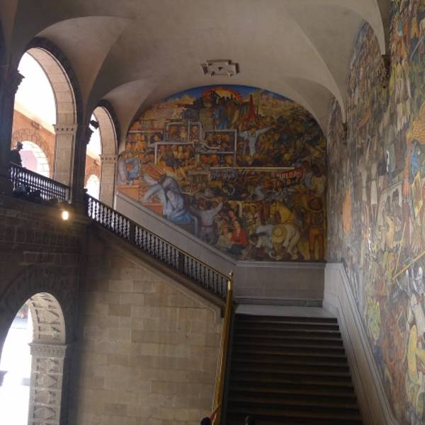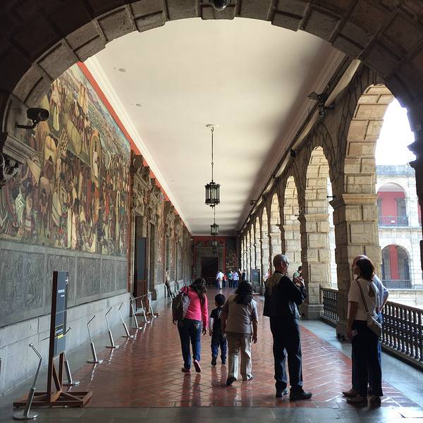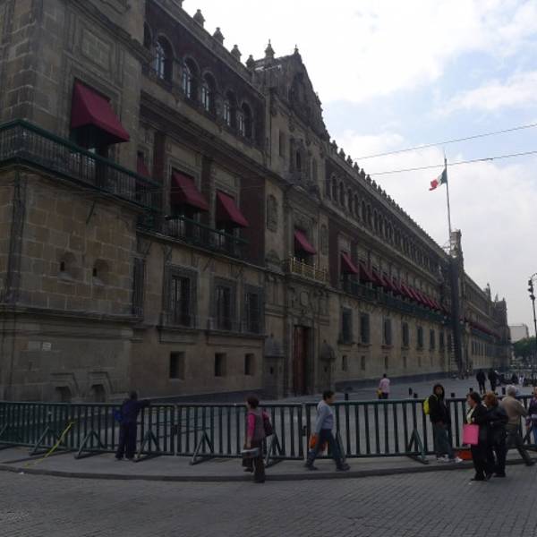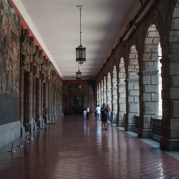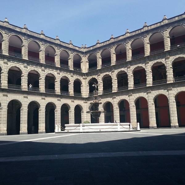 国家宫 (Palacio Nacional) 始建于 1522 年,原本是殖民者埃尔南科尔特斯为自己修建的第二座私人住宅,原址的一部分曾是蒙特祖玛的寝宫。国家宫曾作为总统府(至 1872 年),至今可以看到保存完好的原众议院。