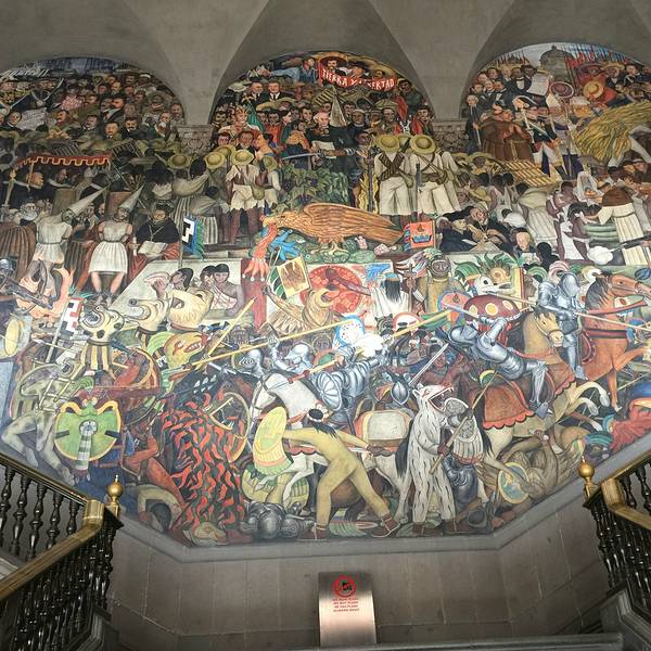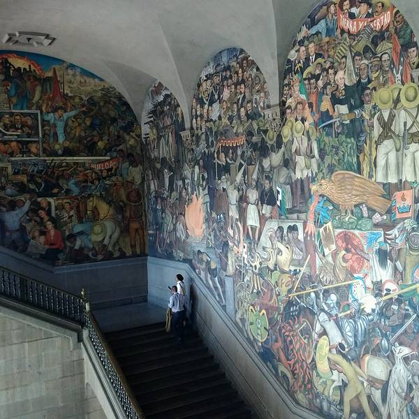 国家宫中最引人注目的便是迭戈里维拉 (Diego Rivera) 的壁画《几世纪的墨西哥》 (México a Través de los Siglos) ,从二层的主楼梯开始直至原众议院为止,内容包括前哥伦布时代,墨西哥被征服的历史,墨西哥独立战争以及墨西哥大革命时期等。壁画艺术风格上借鉴了古代印第安人壁画的造型以及文字码(Códices)。如今总统府早已迁址,而传统的独立日庆典(于每年 9 月 15 日夜晚举行)墨城民众都会聚集在宪法广场上,当任总统会站在国民宫阳台上带领广大群众高喊:墨西哥万岁!墨西哥万岁!独立万岁!“