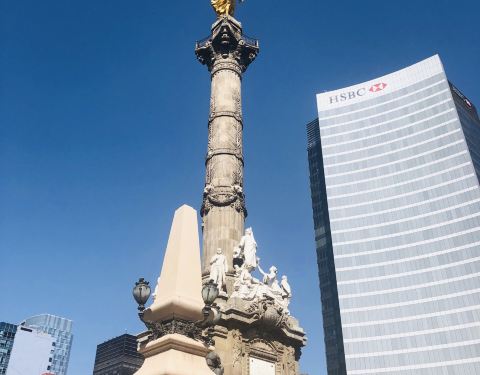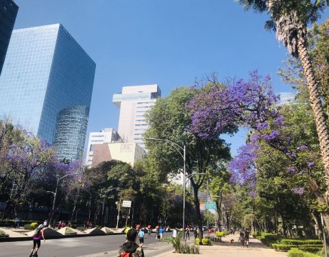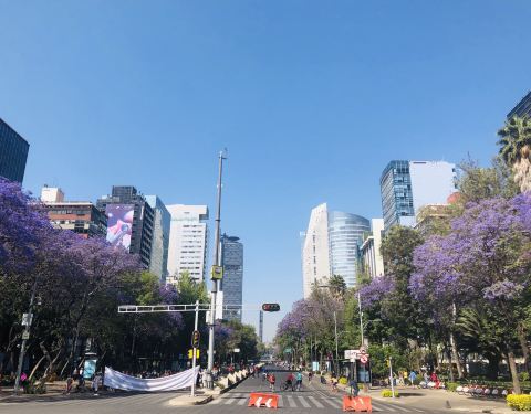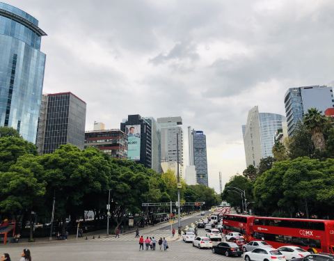 改革大道基本是独立天使像和印第安人像之间的道路,道路两旁高楼林立,遍布高档酒店、写字楼和商场;行车道和步行道都十分宽阔,而且绿树掩映,间或矗立着人物雕像或艺术作品,据说是仿法国香榭丽舍大街而建。