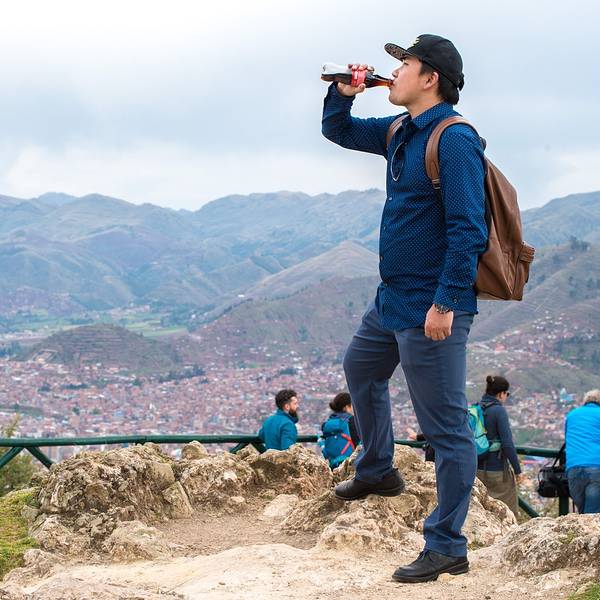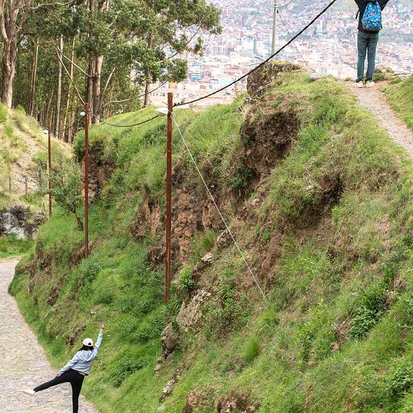 上演一出佩服的五体投石。虽然 库斯科 海拔不低,但空气比较湿润,所以高原反应的的影响较小,慢慢的爬到山顶也不会觉得太累。有没有很像 马丘比丘 的太阳门。给南美可乐打个广告。在山上俯瞰整个 库斯科 像极了 欧洲 的城市,以中心广场为圆心,向外放射状辐射。山上也是当地人的休闲的聚集地,随处可见躺在山坡上晒太阳的小朋友。上部的建筑已经所剩无几,但留下的城墙地基,依稀可见当时的城市轮廓,还是非常壮观的。偶尔也有穿着民族服饰,牵着羊驼和游客合照的当地人,价钱随喜。诶,有人要走阳关道,有人要走羊肠道,这算不算分道扬镳呢~ 展开