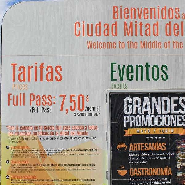 实用 赤道纪念碑整个景区的游览大约在两个小时左右,作为厄瓜多尔的一张旅游名片,推荐游览,而且是强烈推荐来厄瓜多尔旅行,不可不提赤道纪念碑,因为厄瓜多尔这个国家的名字在西班牙语中的发音就是赤道的意思,而且这个国家也正是被赤道穿过,所谓的“middle of the world”赤道纪念碑位于厄瓜多尔首都基多北部的郊外,...来厄瓜多尔旅行,不可不提赤道纪念碑,因为厄瓜多尔这个国家的名字在西班牙语中的发音就是赤道的意思,而且这个国家也正是被赤道穿过,所谓的“middle of the world”赤道纪念碑位于厄瓜多尔首都基多北部的郊外,并不是位于基多市中心,前往此地参观小费周折,先说说这里的交通,从基多市中心出发可以乘坐C1城市metro到终点站T.Ofelia下车,票价0.25美元这是一处小型巴士综合站点,之后再T.Ofelia乘坐到MITAD DEL MUNDO下车即是赤道纪念碑,票价0.35美元。车程约在1小时左右。基多旅游局已经将赤道纪念碑这一单一的旅游景点打造成为如今的以其为中心的综合旅游区,所以现在赤道纪念碑实行FULL PASS的制度,即票价7.5美元,可以参观除赤道纪念碑外以外的其他3个附属景点。在购买门票过后,售票员会在购票者手上带上这个纸质手环,入院时接受检查。赤道纪念碑的FULL PASS包括四大景点——赤道纪念碑、viviandas古民居、plaza del cacao(可可广场展)、厄瓜多尔火车展等四大景点。如今的赤道纪念碑经过整修后,重新散发着其独特的魅力吸引着世界各地的游客前往参观。赤道纪念碑两侧是来自厄瓜多尔、西班牙、法国等不同国家对于测量赤道及探测本国亚马逊流域做出贡献的科学家的塑像,外围的蜂鸟座椅活泼生动且不失自然元素。赤道纪念碑无疑是这四大景点中的最大看点。赤道纪念碑的参观从2层顶层开始,步入电梯后可以直达高30米的顶层,俯看整个赤道分割线及综合旅游度假区。之后依次下楼参观游览,第一部分的区域是介绍赤道纪念碑从1936年开始筹建到1979年建成的这段历史。再下楼便是厄瓜多尔各个地区不同的人文民俗展,令人在第一时间对于这个国家有个大致的了解。再下楼便是游客可以直接参与并感受地球赤道地区的奥妙之处。亲自上去称过体重,果然轻了1公斤。Vivienda ancestrales景区是介绍在法国地理学专家未测量赤道线之前,这里古人的生活概况。