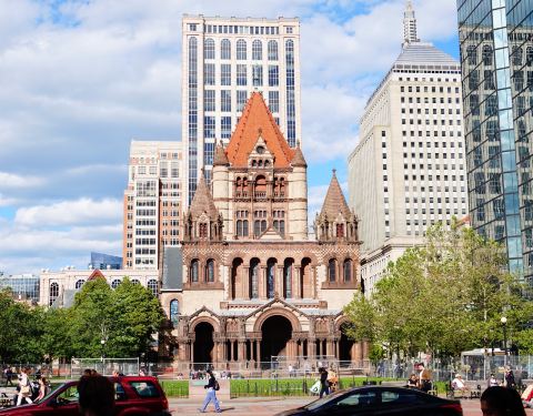 波士顿三一堂是马萨诸塞州圣公会教区的重要教区,自1733年成立以来持续运营,是波士顿第三古老的圣公会教区。每周及日常都会举办礼拜活动,其讲道与音乐质量备受赞誉。 教堂现址建筑是教区的第三座教堂,也是马萨诸塞州圣公会教区最大建筑,可容纳1350人参与礼拜及全市性活动。它曾获1885年美国建筑师协会“全美最佳建筑”称号,1986年仍跻身十大经典建筑,1971年被列为国家历史地标,每年接待超7万名游客。 这座建筑由建筑师亨利·霍布森·理查森设计,1872至1877年间建成,内部由画家约翰·拉法奇团队打造出绚丽装饰。教堂历史上教众多元,如今通过众多外展项目服务城市与市民,同时也是兼具宗教意义与艺术价值的朝圣之地。